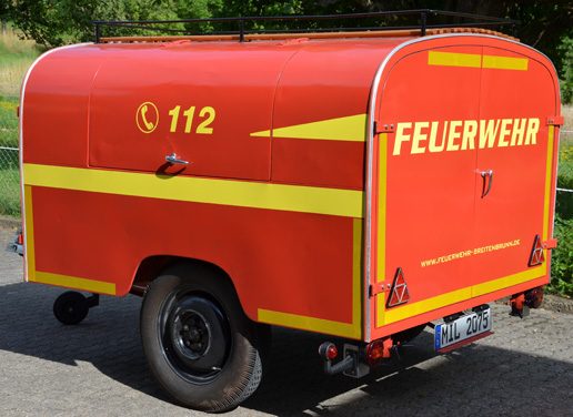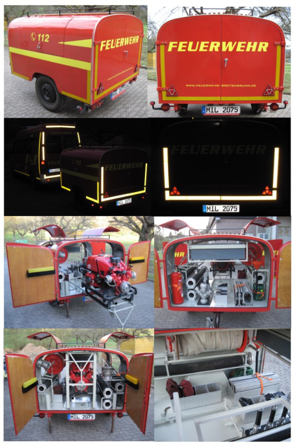 Tragkraftspritzenanhänger (TSA) mit einer feuerwehrtechnischen Beladung für eine Gruppe. Da der TSA über keine Atemschutzgeräte verfügt, wurde dieser für unsere Zwecke zur Wasserentnahme und der Wasserförderung über lange Wegstrecken umgebaut.
